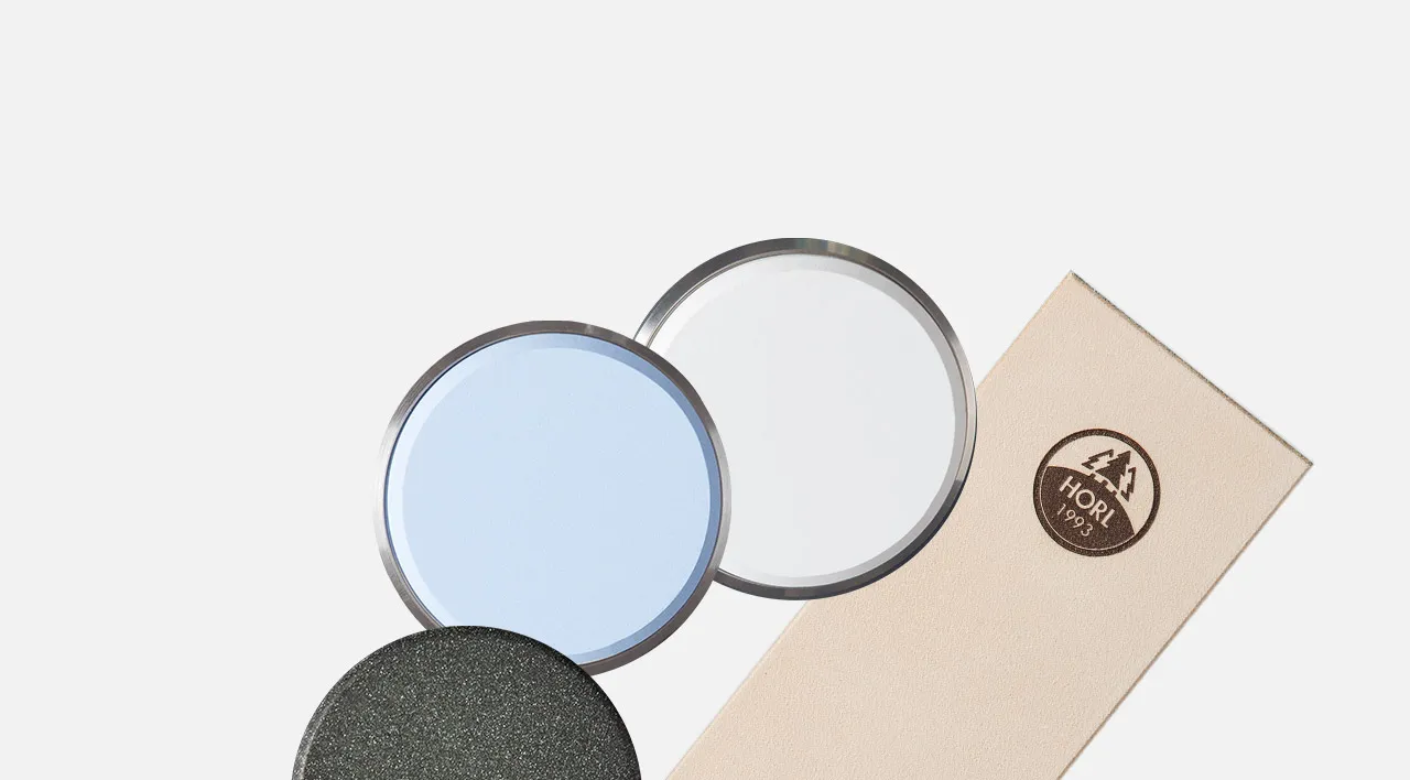 After sharpening using the HORL whetstones fine and extra fine, additional use of the HORL Kagami allows you to achieve an incredible mirror-like sharpness that sets new standards both optically and measurably. Finish off with the HORL Kagami slightly dampened.